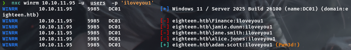 evil-winrm -i dc01.eighteen.htb -u adam.scott -p iloveyou1