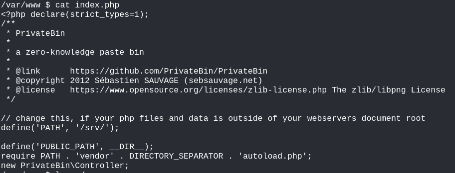 这里看到是有docker的,找到这个privatebin目录发现少东西,明显是挂载的目录出来是一个docker
