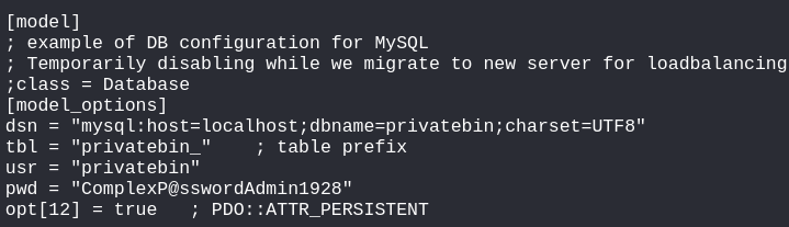 这边直接cat里面的conf.php翻一下有没有账号密码什么的或者其他凭据