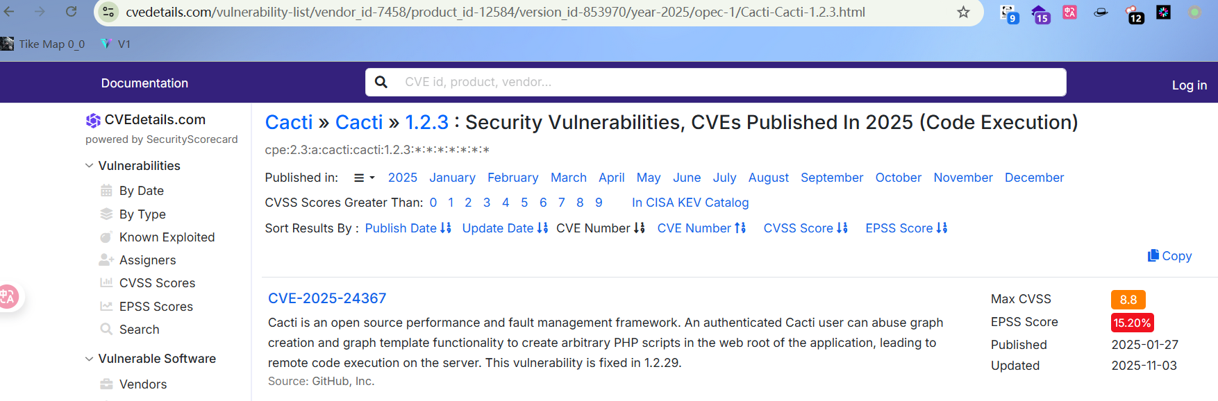 不过没有扫出来漏洞,主动找一下,通常都是2025年的,只有一个,版本1.1.28也能打