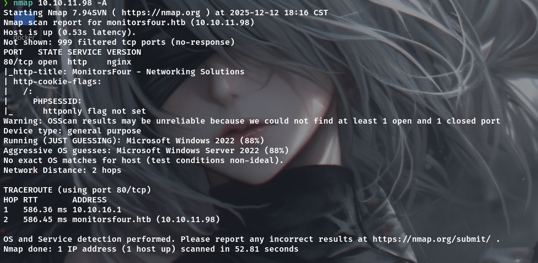 echo "10.10.11.98 monitorsfour.htb DC01.monitorsfour.htb" >> /etc/hosts;Nmap