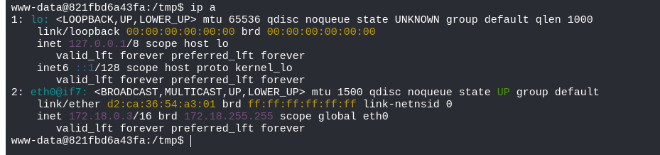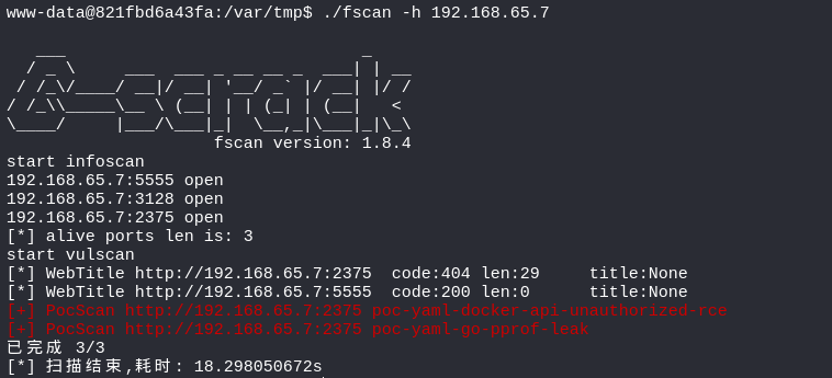 环境是docker的,要拿到root.txt还需要进行逃逸.ip a 在172.18段,不过我fscan传上去后扫了整个172.18都没东西,唉