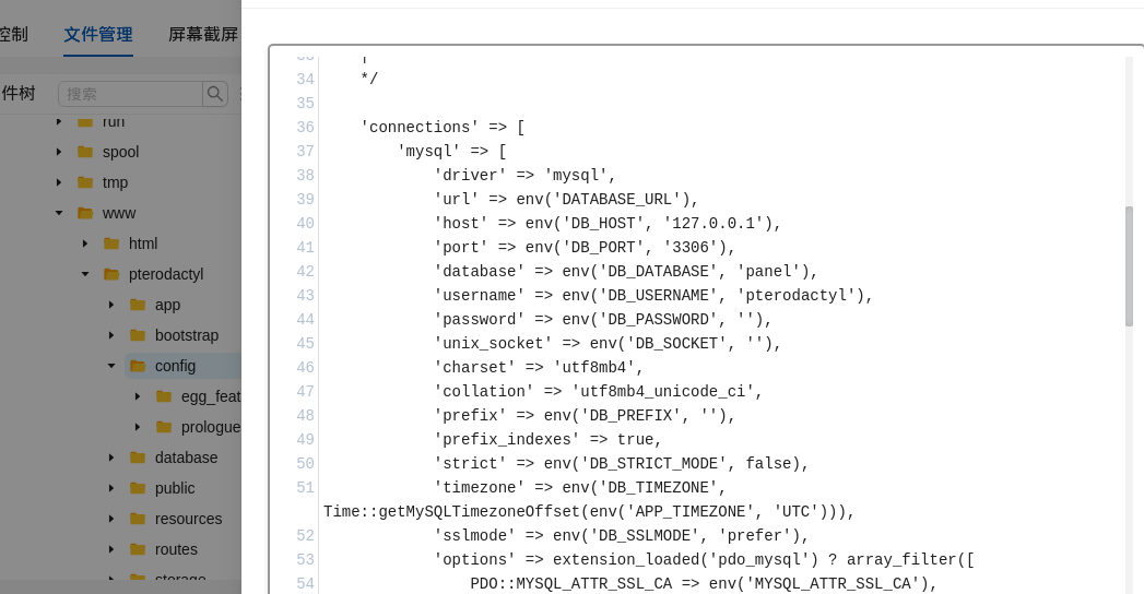 提权的话,先是找一下数据库里面的用户凭证,本来想用PHP-adminer的,结果发现权限全是root.凭证是在一个config里面的database.php里面找到的