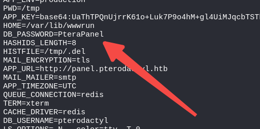 总结下来就是有一个Pterodactyl面板,有phpinfo调试页面(直接跟phpinfo.php),PHP有pear拓展,然后搞了DNS有子域名.刚开始我还以为子域名是play.pterodactyl.htb ,结果不是,还是常规子域名扫一下发现有panel.pterodactyl.htb 指向这个翼龙面板