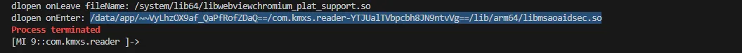 直接hook后很容易发现在加载libmsaoaidsec后程序直接退出,而且我们同时在onLeave时hook了jni_load函数,但是并没有回显,这可以说明,这个反frida是发生在jni_load之前的