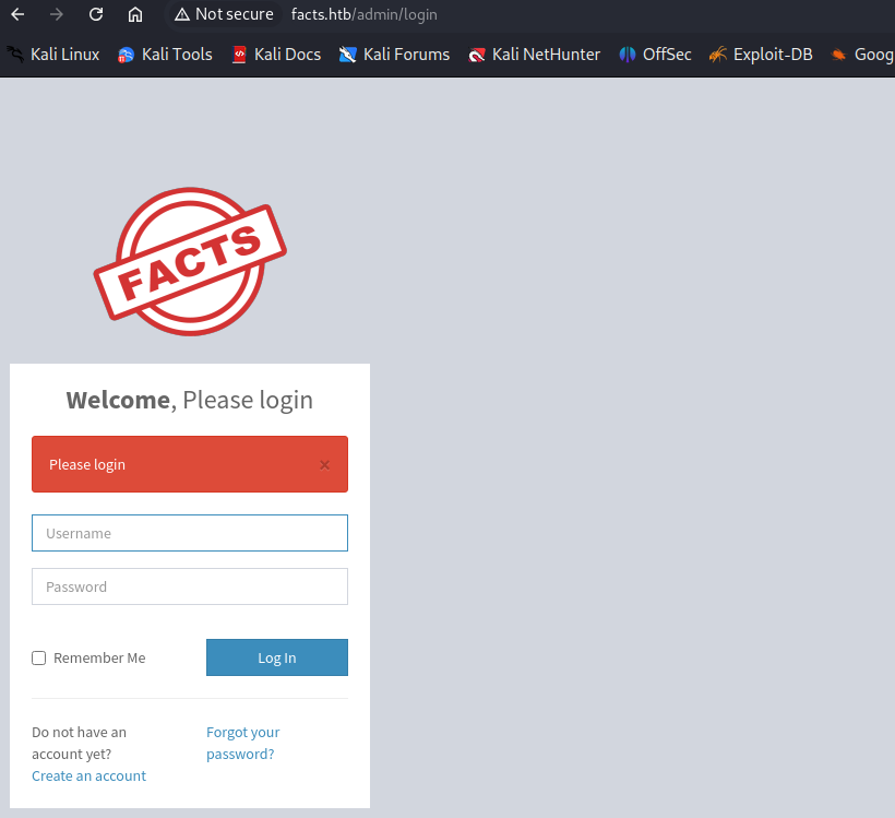 echo '10.129.10.4 facts.htb' >> /etc/hosts 信息搜集