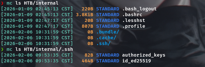 mc get HTB/internal/.ssh/id_ed25519 ./ssh